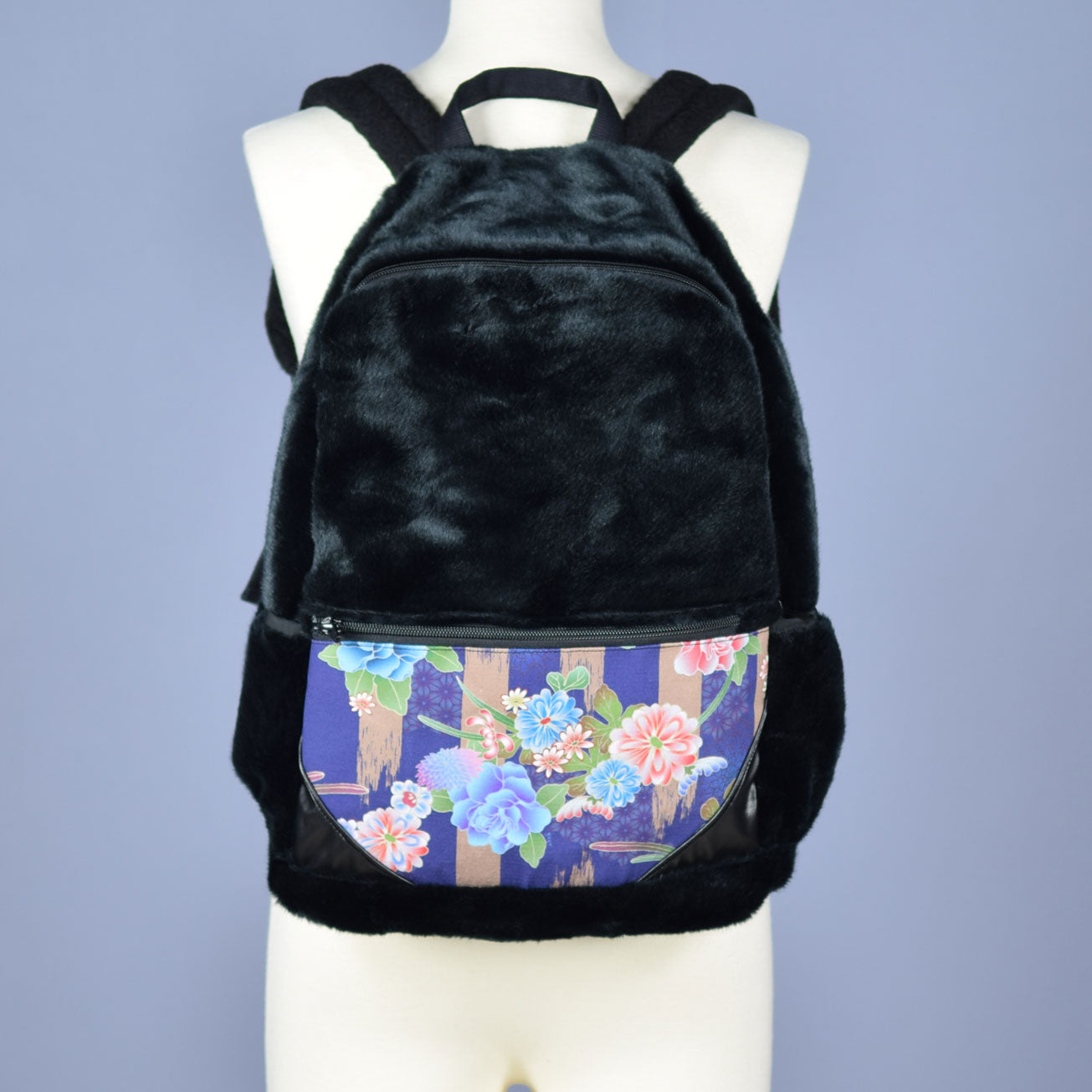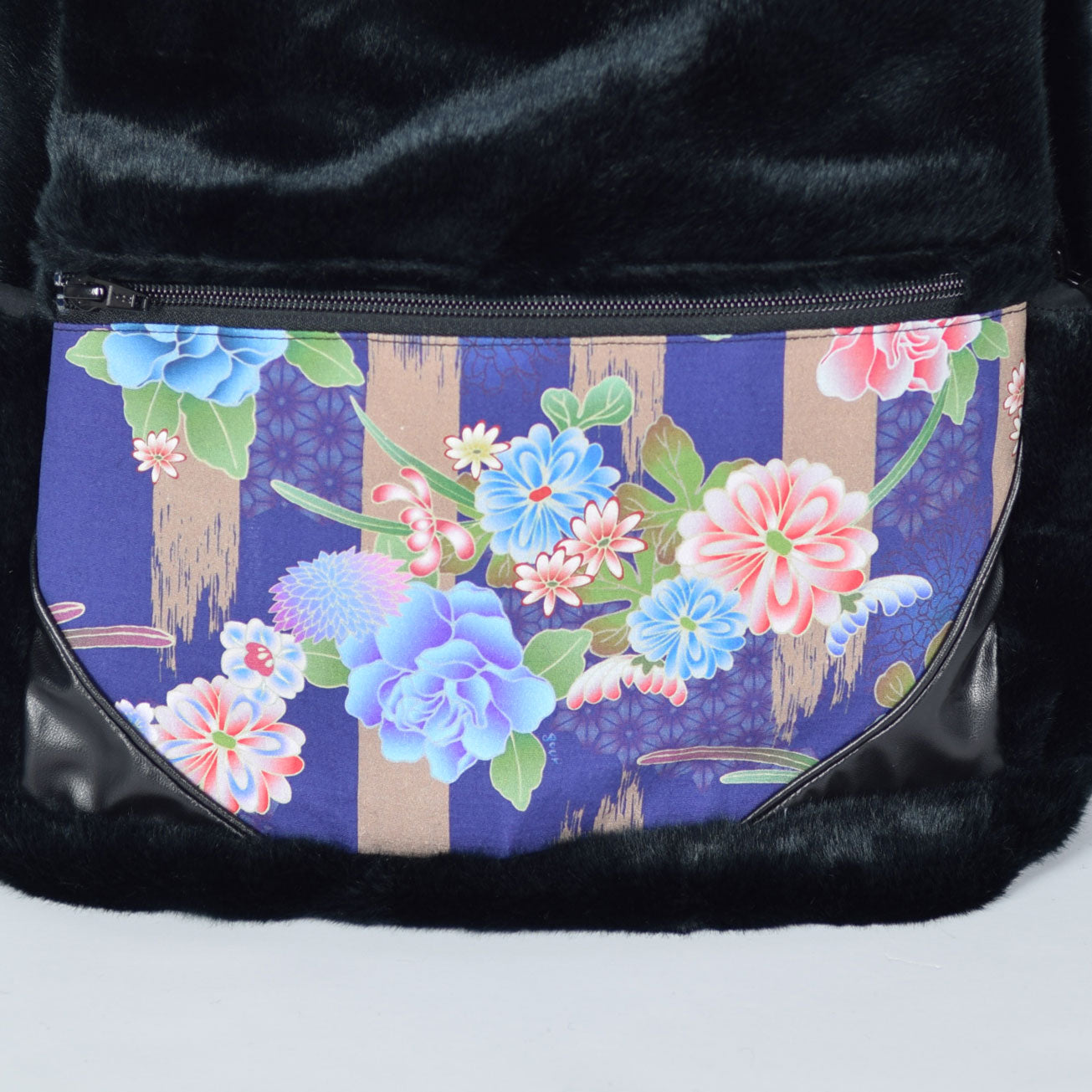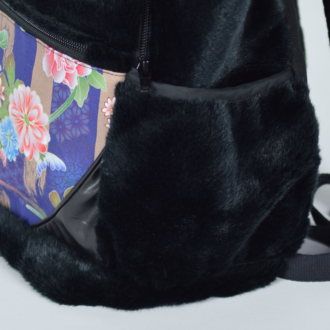 この秋冬流行りの、フェイクファーの素材で作ったリュックです。